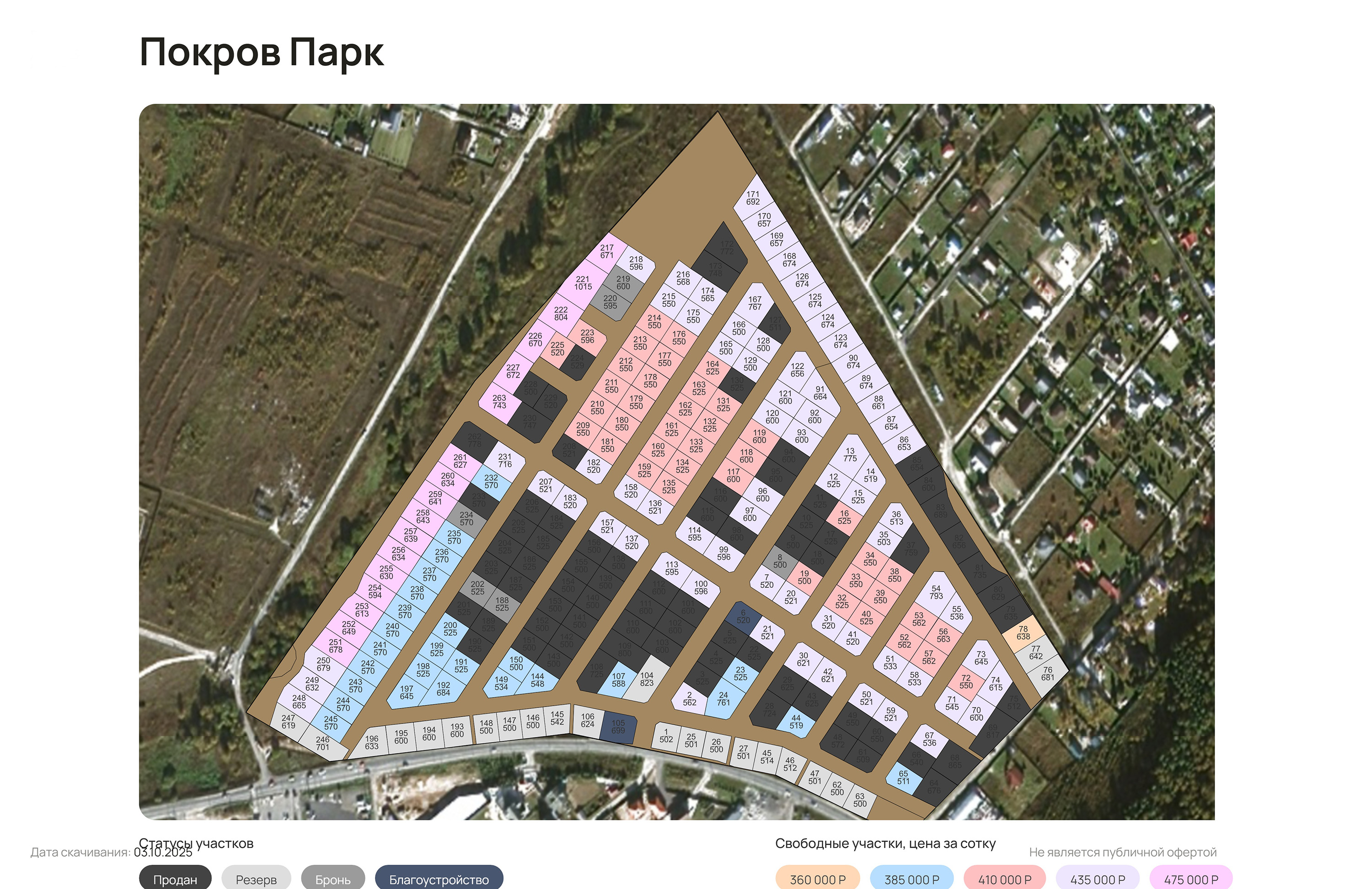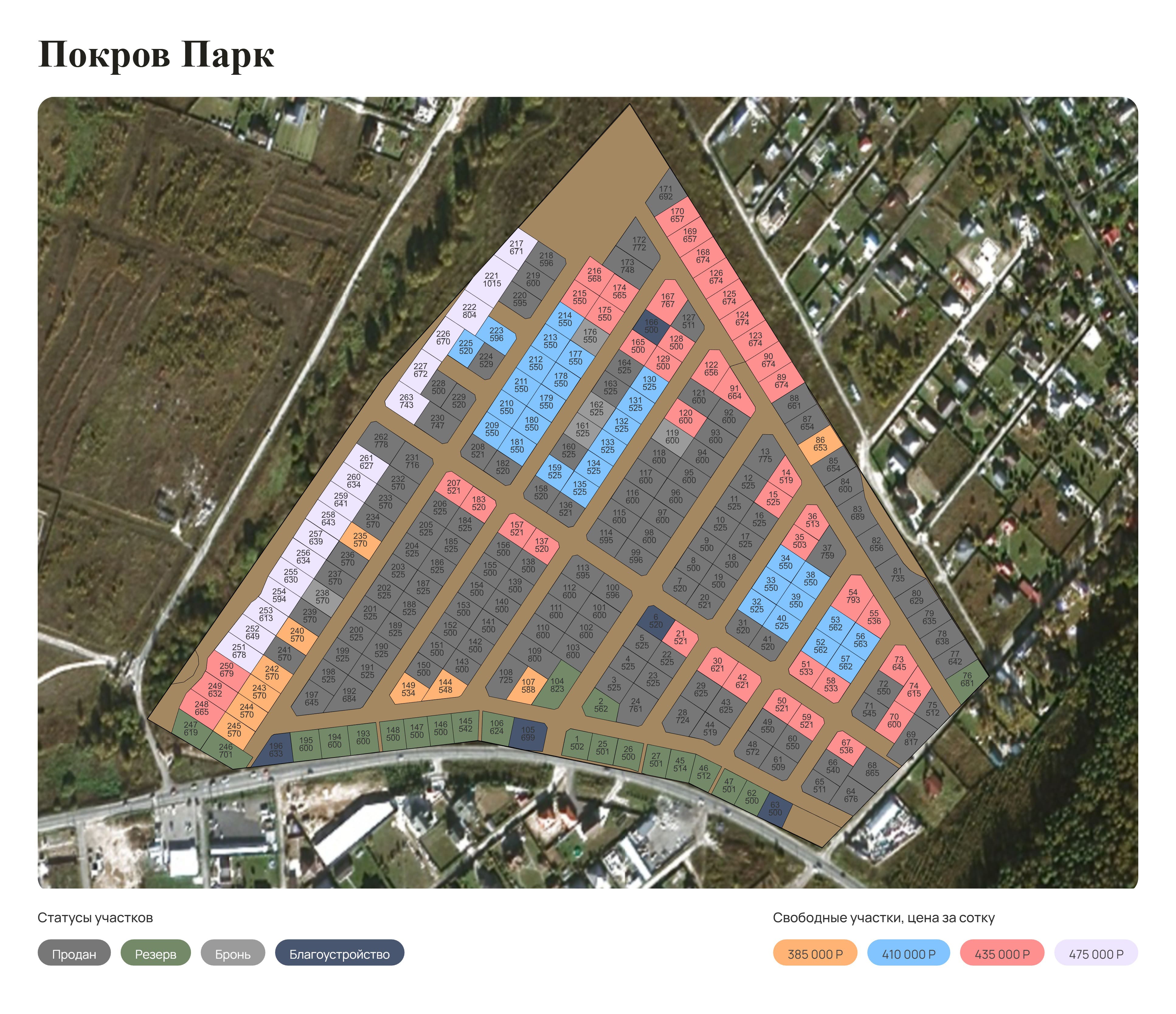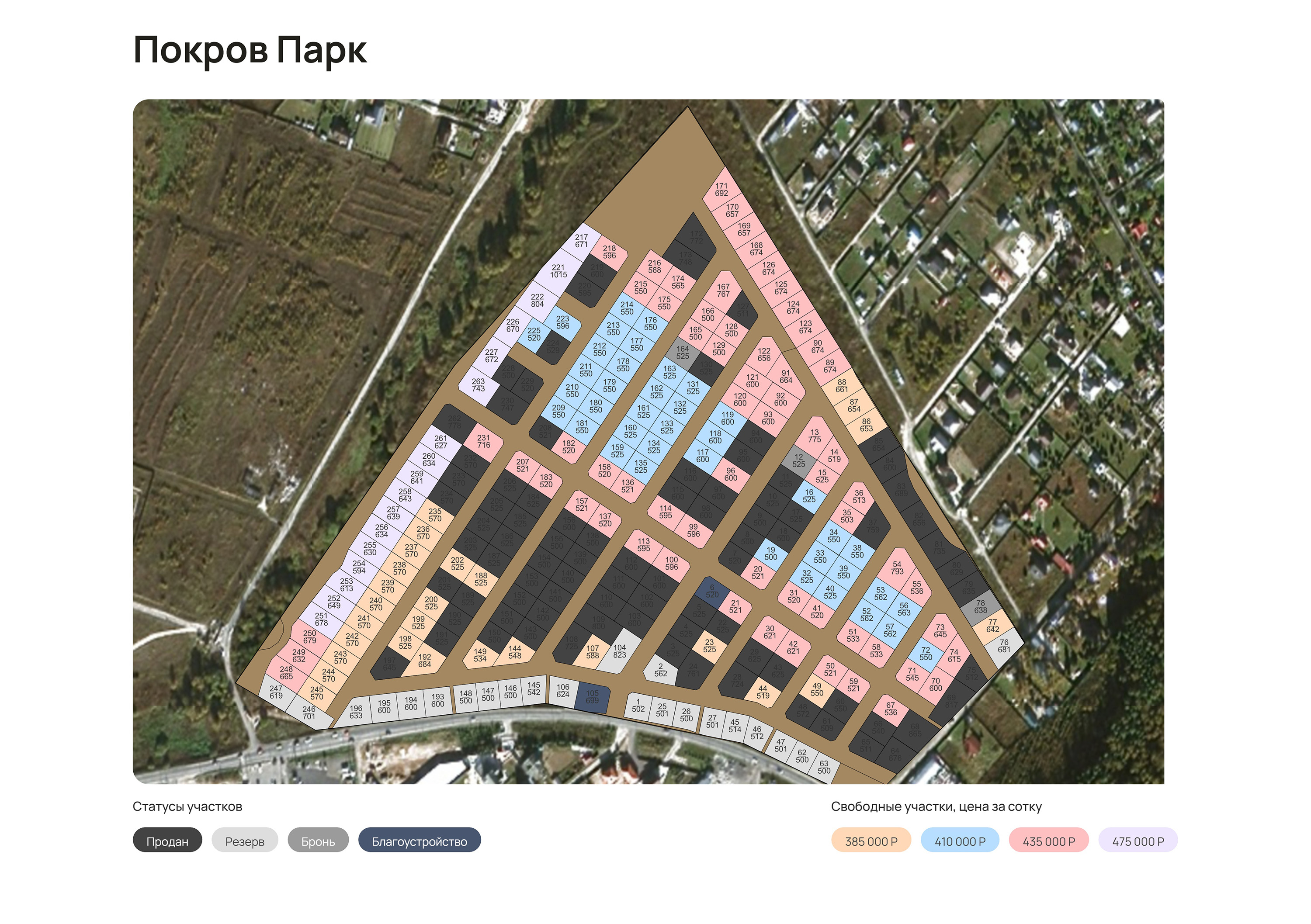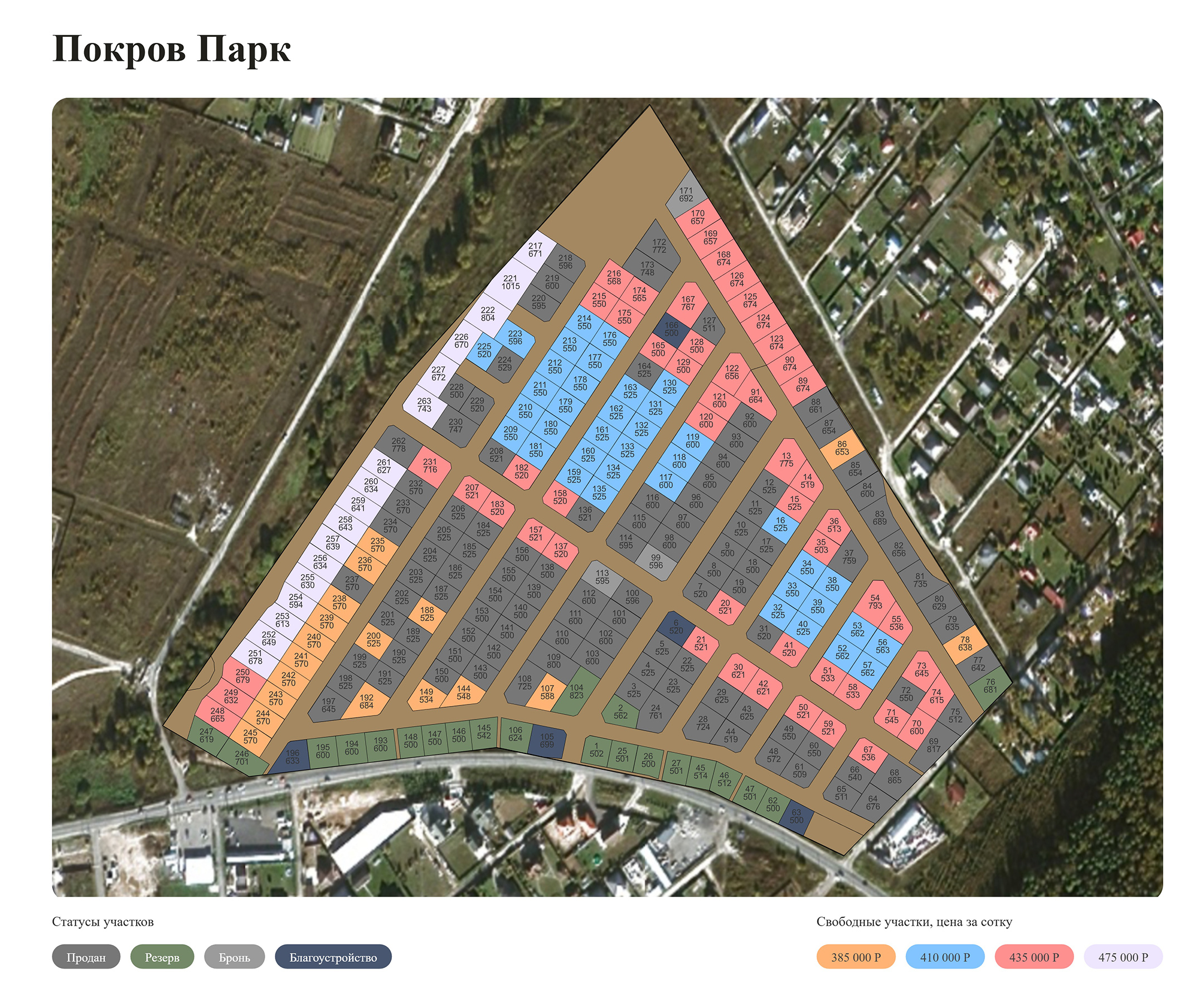 Покров парк - это безопасный коттеджный поселок для вас и ваших детей, поэтому предусмотрены ограждение по периметру и въездная группа со шлагбаумом. Предусмотрены детская и спортивная площадки. Дороги из твердого покрытия. Электричество 15 кВт, газификация.